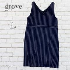 グローブ ネイビー ストライプ ワンピース 『L』 裏地付き 細見え効果