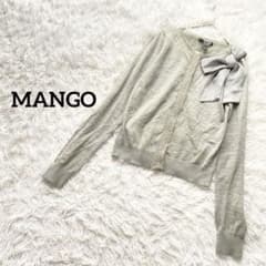 マンゴ 長袖ニットカーディガン 羽織 リボン ウール混 オフィスカジュアル